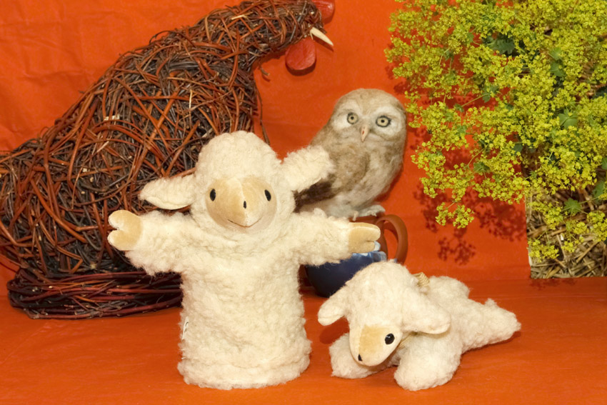 Unsere Fuchsschafe haben Modell gestanden und gerne ihre Wolle dafür geliefert. Sowohl unsere Handpuppe als auch das liegende Lamm werden aus reiner Schafwolle gefertigt, das Trägergewebe ist Baumwolle, zur Füllung wird Schafwolle verwendet. Ein schönes Geschenk nicht...